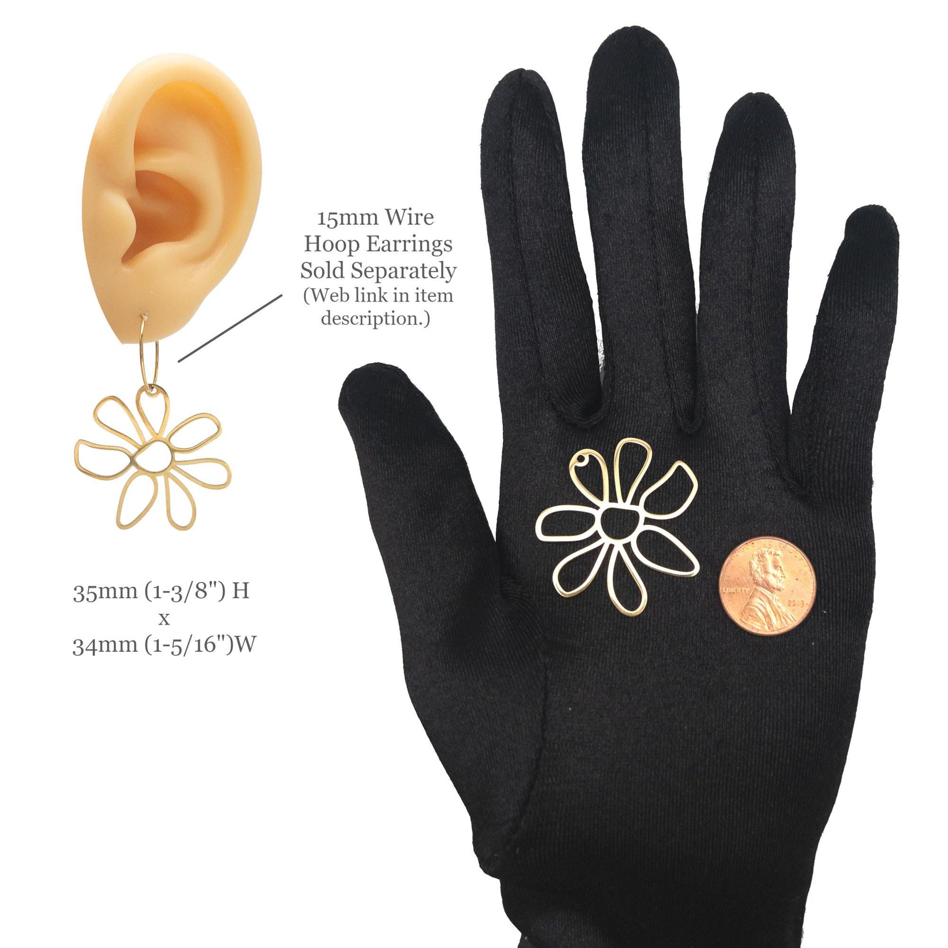 Daisy Flower Charm, 2PC Allergy Free Stainless April Birth Flower Charm in Anti-tarnish Waterproof 18K PVD Gold for DIY Earring & Necklace