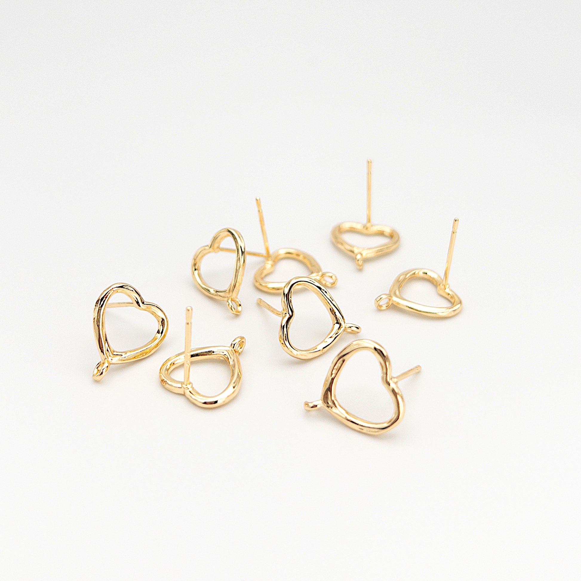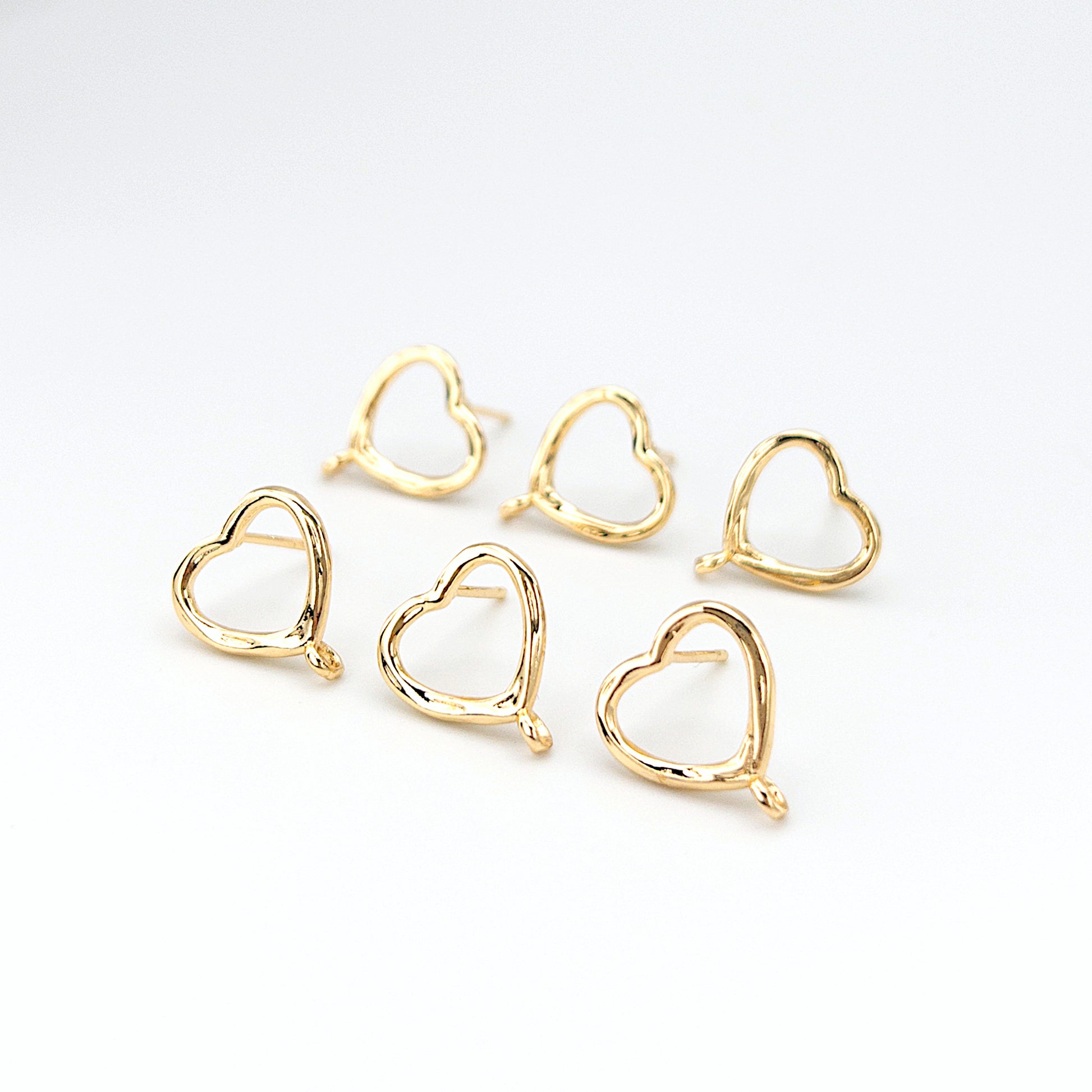 Small Open Heart Stud Earring Findings with 14K Gold Plating, Earring Findings for Jewelry Making, Lead & Nickel Free, Buy USA, 10 Pieces