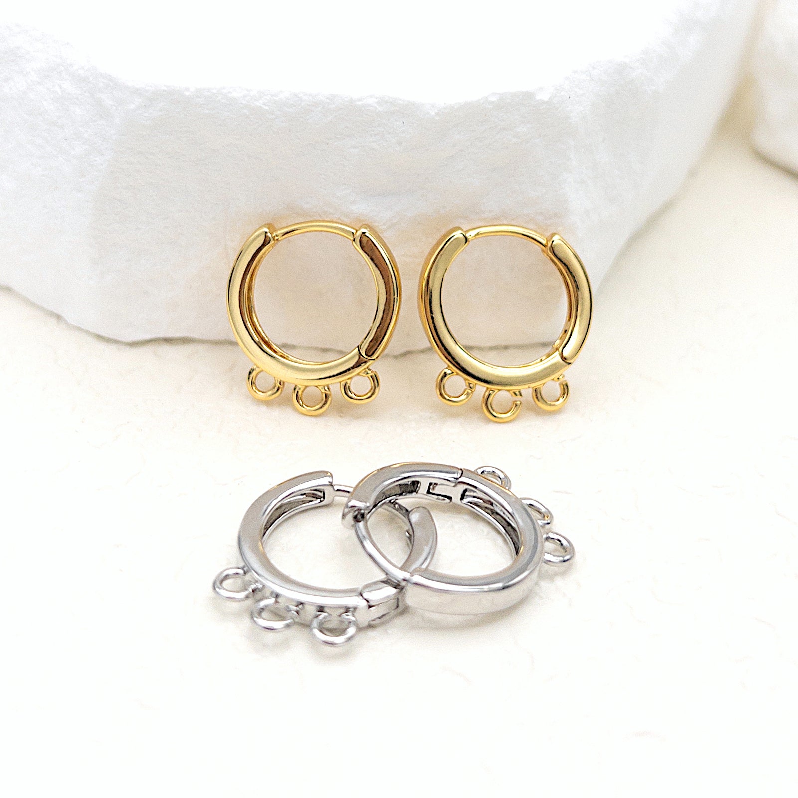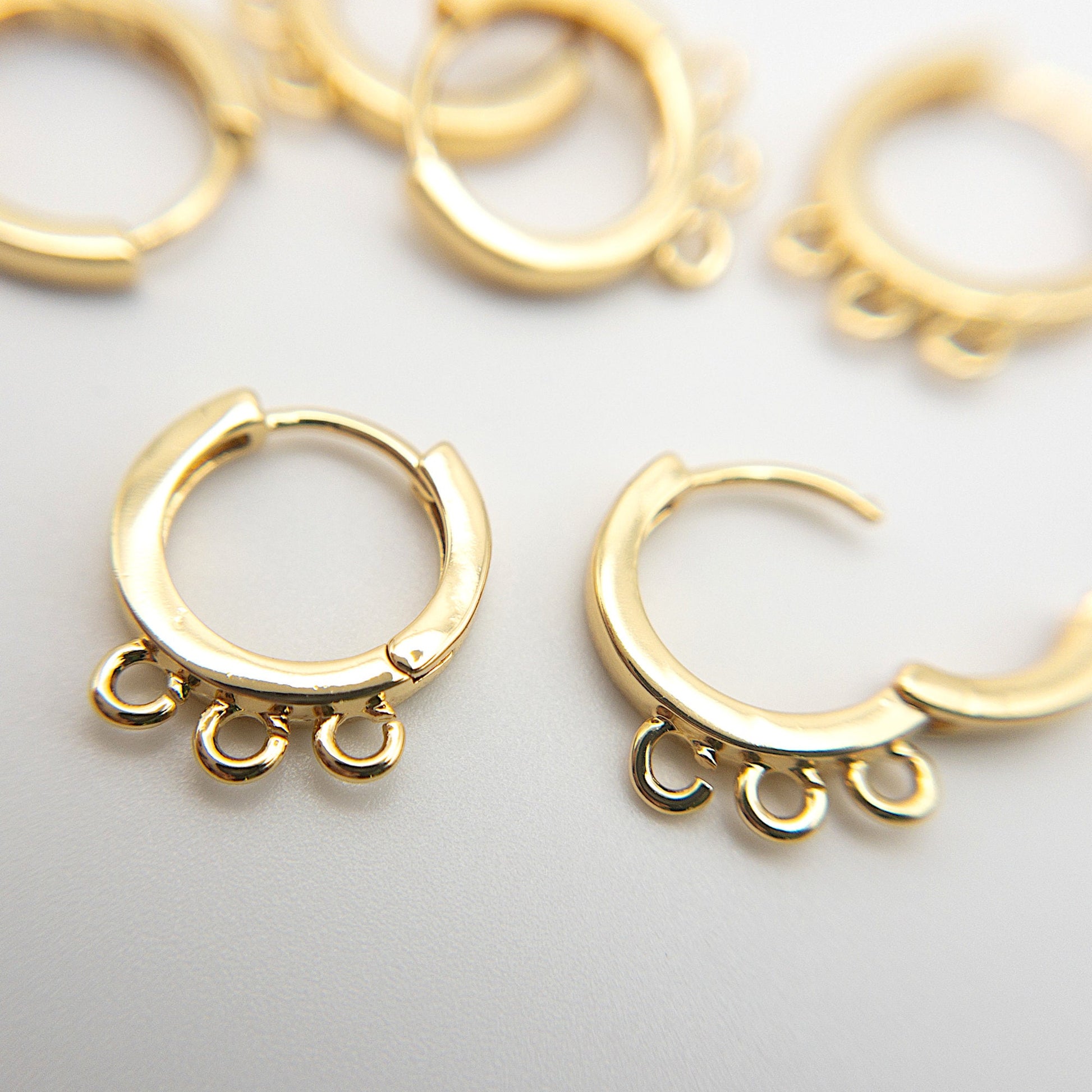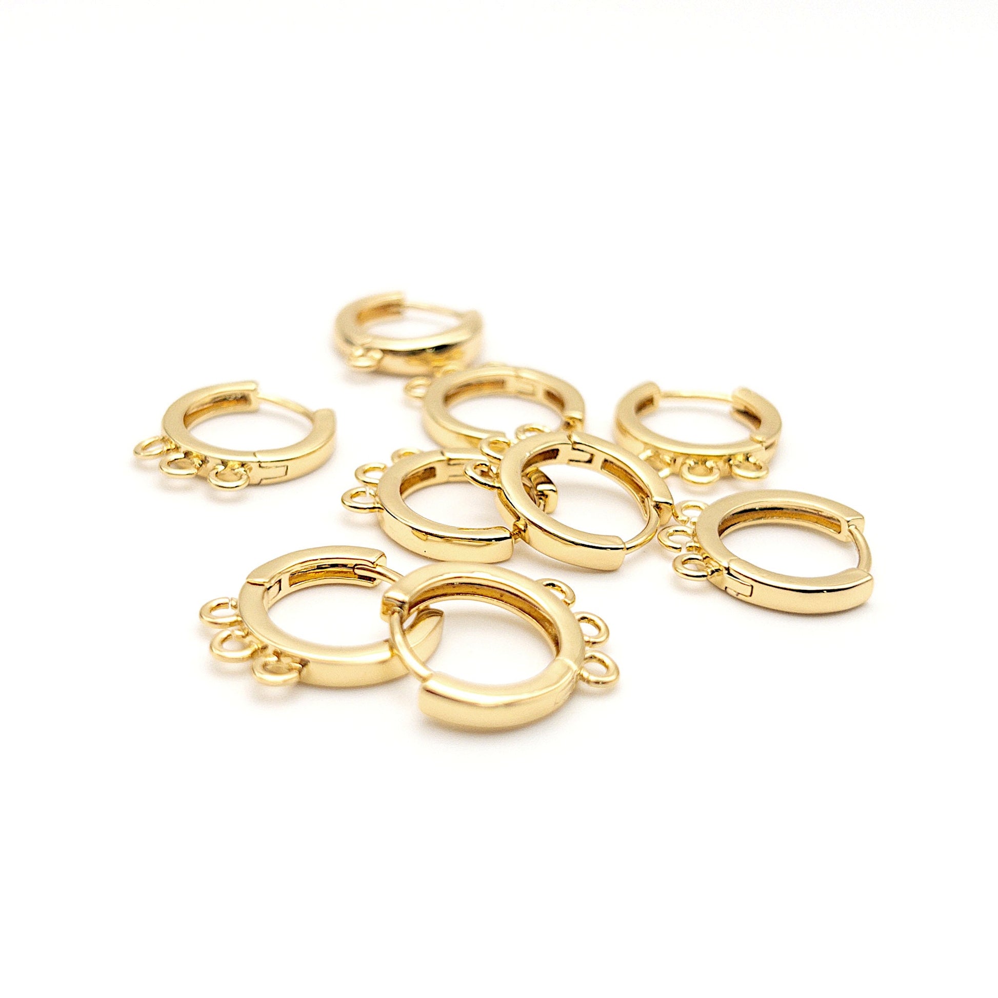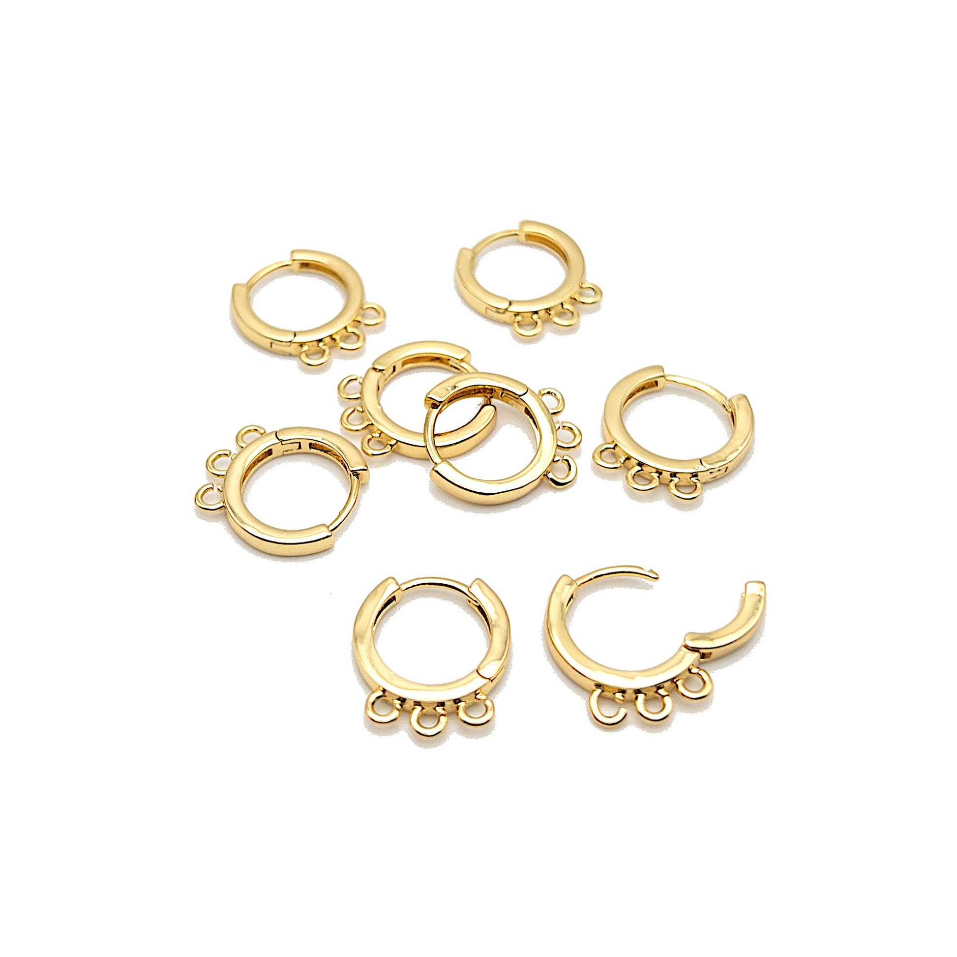 Huggie Hoop Earring Finding, 10PCs One-Touch Hoop Blank with 3 Open Attach Loop in Anti-tarnish 18K Gold Plating, Nickel Nickel Free