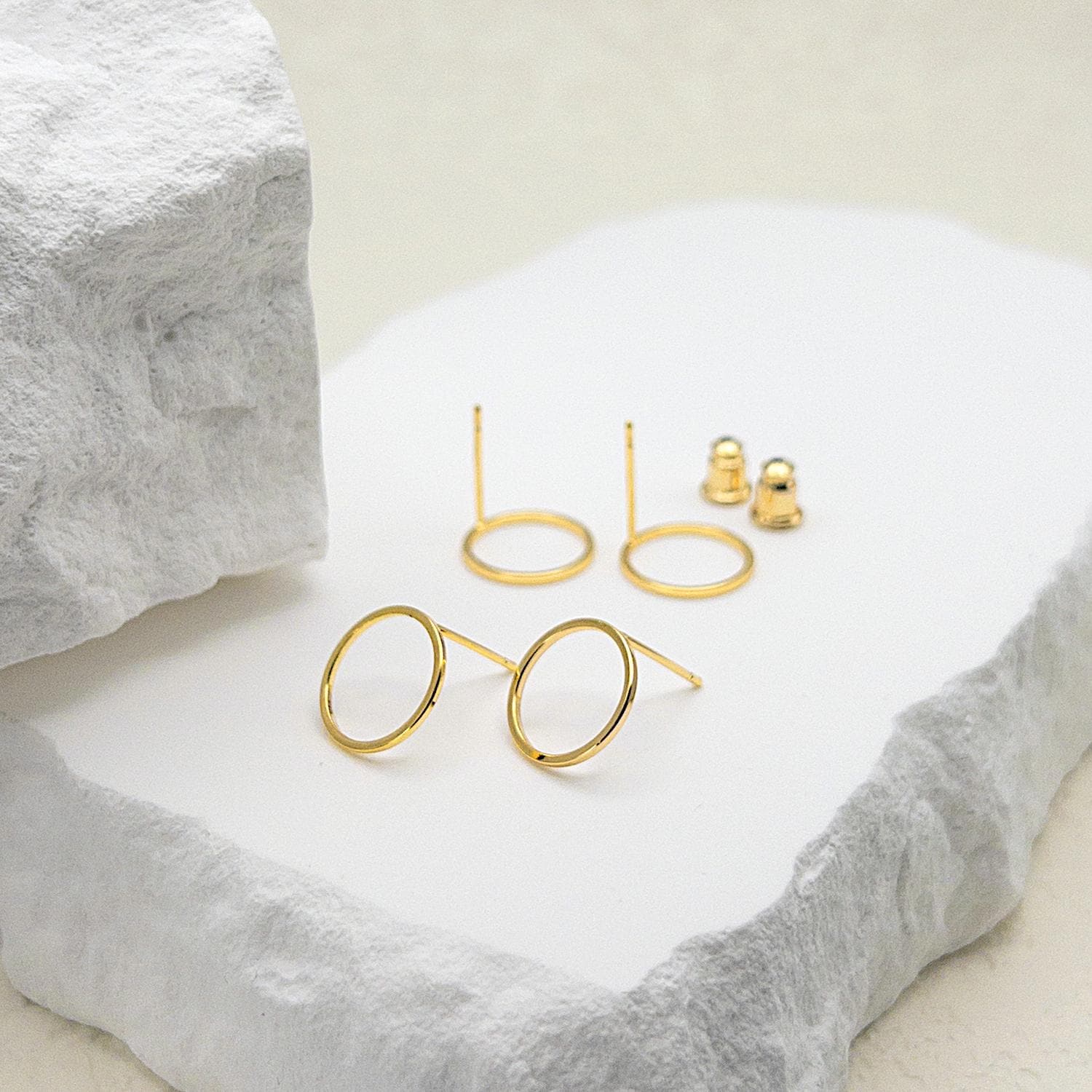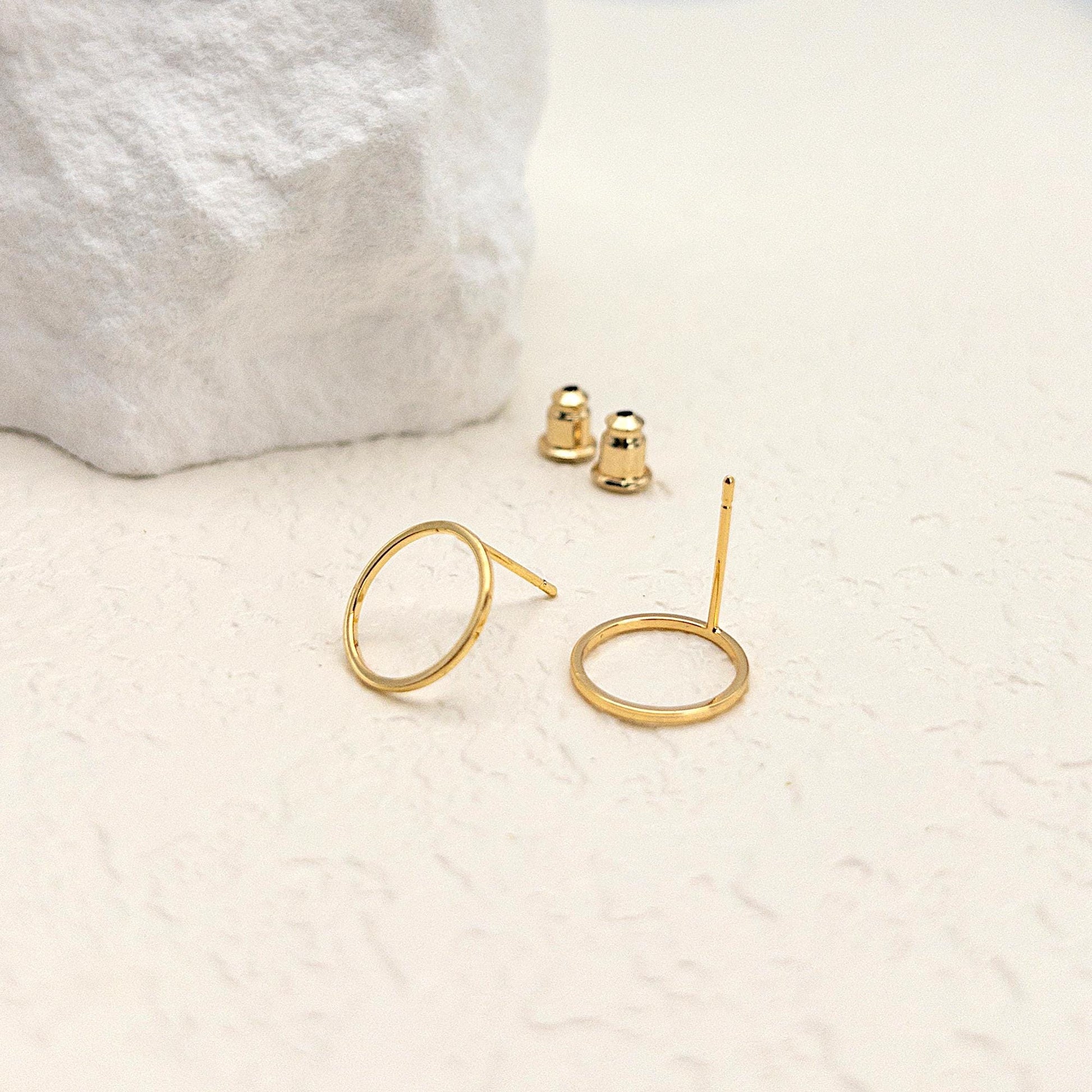 Add a touch of effortless elegance to your look with these minimalist gold circle stud earrings. Designed with a sleek open hoop, they're perfect for customizing with your favorite charms or pendants. A timeless base for handmade creations-whether it's polymer clay, birthstones, or birth flowers-these studs offer endless design possibilities!